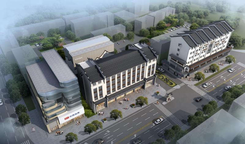 商業(yè)樓整體風格從傳統(tǒng)徽派建筑風格演化而來,借鑒傳統(tǒng)徽派建筑的馬頭墻形式作為設計的手法及元素。