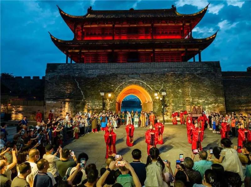 “水亭門之夜”沉浸式演出活動(dòng)由市文旅局、市城投集團(tuán)主辦,市西安高腔傳習(xí)所承辦,每周五晚的實(shí)景劇《東南闕里》屬于“水亭門之夜”的主題性演出,也是主打節(jié)目品牌,每場(chǎng)演出的演職人員近70人,演出時(shí)長(zhǎng)約一小時(shí),從水亭門西側(cè)城樓下廣場(chǎng)行進(jìn)演出至東側(cè)牌坊古戲臺(tái),深受觀眾喜愛(ài)。